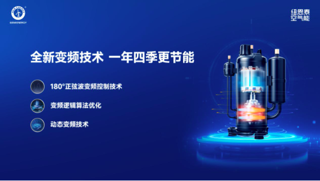 關(guān)注核心技術(shù)至關(guān)重要。紐恩泰的動(dòng)態(tài)變頻技術(shù)實(shí)現(xiàn)機(jī)組輸出在30%-100%無(wú)級(jí)調(diào)節(jié)智能升降頻,可以根據(jù)運(yùn)行環(huán)溫、水溫、室溫等實(shí)現(xiàn)智能調(diào)頻,恒溫運(yùn)行。而其噴氣增焓技術(shù)更是在超低溫環(huán)境下保持高效制熱的關(guān)鍵。