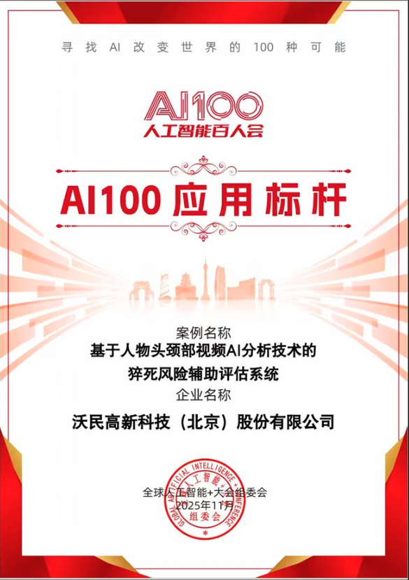 近日,尋找AI改變世界的100種可能——“AI100應(yīng)用標(biāo)桿榜” 名單公布,沃民高科報(bào)送的“基于人物頭頸部視頻AI分析技術(shù)的猝死風(fēng)險(xiǎn)輔助評(píng)估系統(tǒng)”榮登榜單。