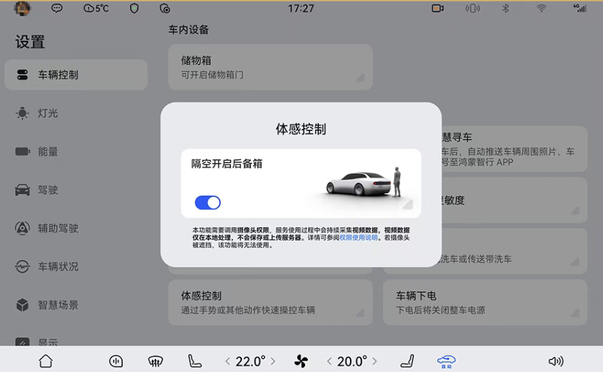 舒適性體驗(yàn)升級(jí)精準(zhǔn)直擊每一個(gè)用車痛點(diǎn),讓每一次出行都倍感愜意。新增“腳踢開啟后備箱”功能,車主站在車尾正后方50cm處,抬腿離地20cm并收回即可開啟后備箱,雙手提物時(shí)更顯便捷。“人走座停”功能可在用戶臨時(shí)離座后自動(dòng)關(guān)閉座椅通風(fēng)等功能,兼顧舒適與節(jié)能。針對(duì)老款車型,新增車內(nèi)隱私保護(hù)功能,支持一鍵關(guān)閉麥克風(fēng)、攝像頭、定位等,守護(hù)用戶隱私;“光隨影動(dòng)”功能讓氛圍燈顏色隨視頻內(nèi)容實(shí)時(shí)變化,大幅提升觀影沉浸感。